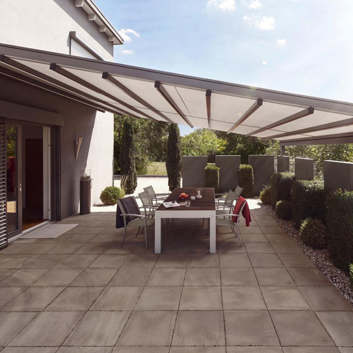 - Transluzenter und regensicherer Stoff für ein angenehmes Klima unter der Markise