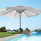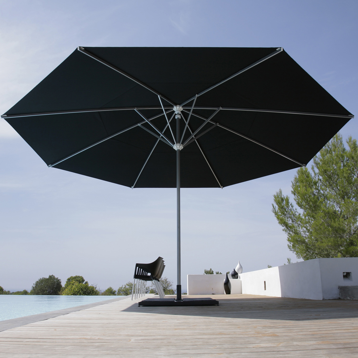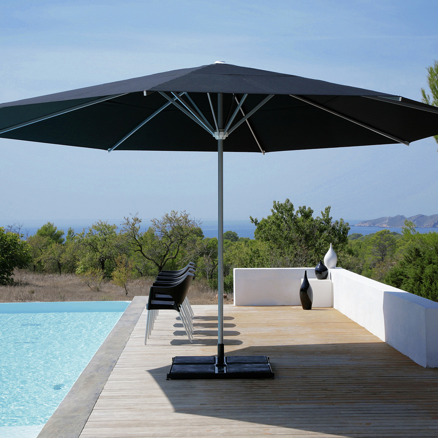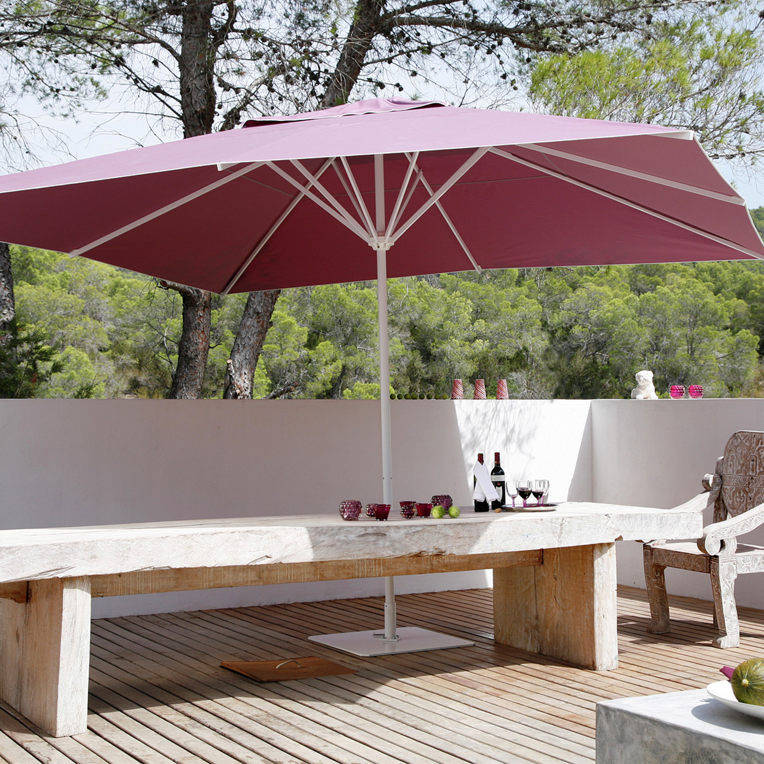 - Raffinierte Teleskopmechanik: Der Schirm schließt über Tische und Terrassen-Möbel, da sich der Mast beim Schließen verlängert. Möbel müssen somit nicht weggeräumt werden!