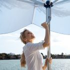 - Schließt über Tisch- und Terrassenmöbel dank raffinierter Teleskopmechanik